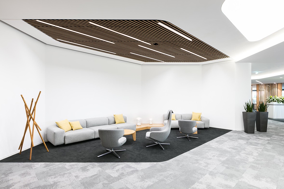 The design adopts a standard material system to design an exquisite space within a reasonable budget. In light brown linear lighting grooves and embedded slat decoration. The custom-made desks and chairs and the wall enclosing the private office and meeting room at the entrance show more wooden details. In addition, work and meeting spaces are also equipped with spacious lounges like cafes that can accommodate all employees. The work space is decorated with fabrics and ceramics, which is as warm and comfortable as a house. Construct space order with a simple geometric shape, and use the simplest method to solve complex problems. Wandering between gray, white and black, a touch of bright color becomes the finishing touch. It is a creative fulcrum and a source of inspiration. It also serves as the soul of the entire space design.