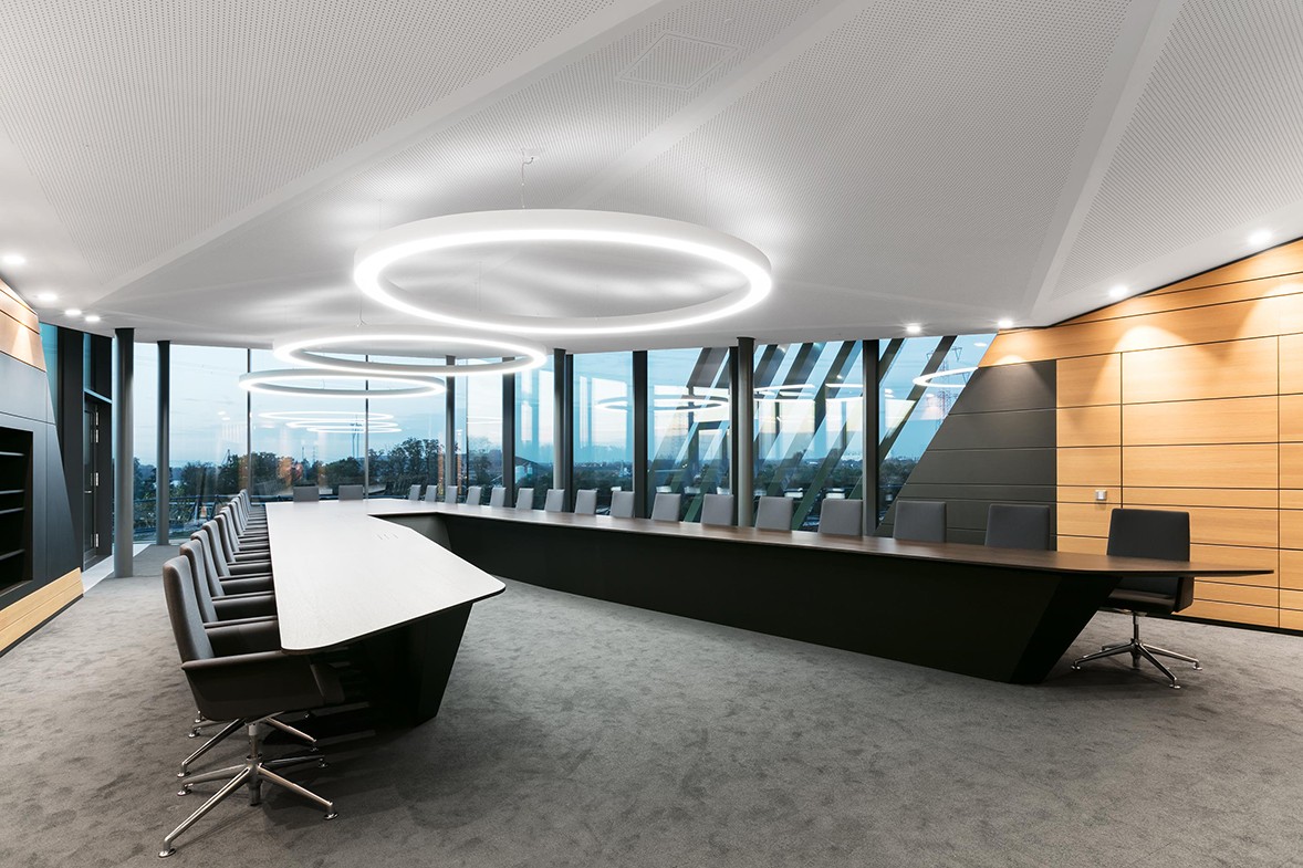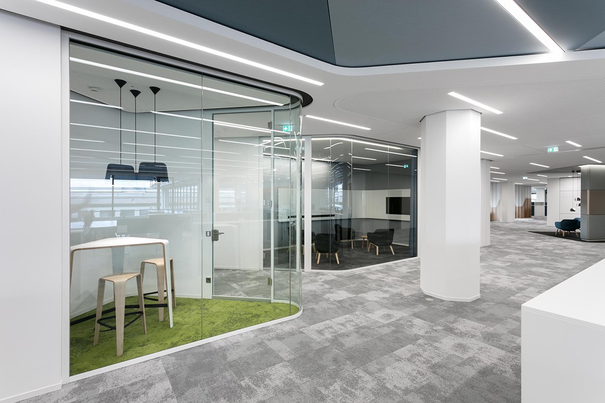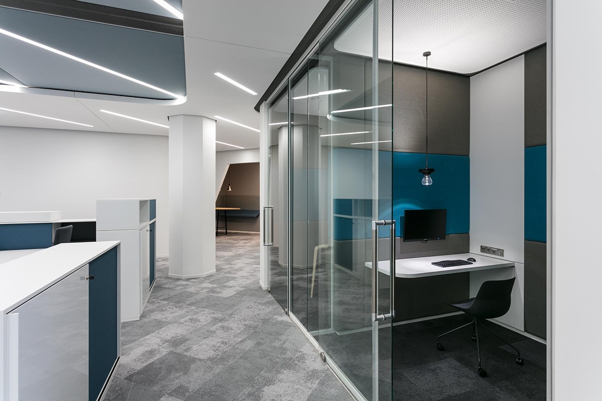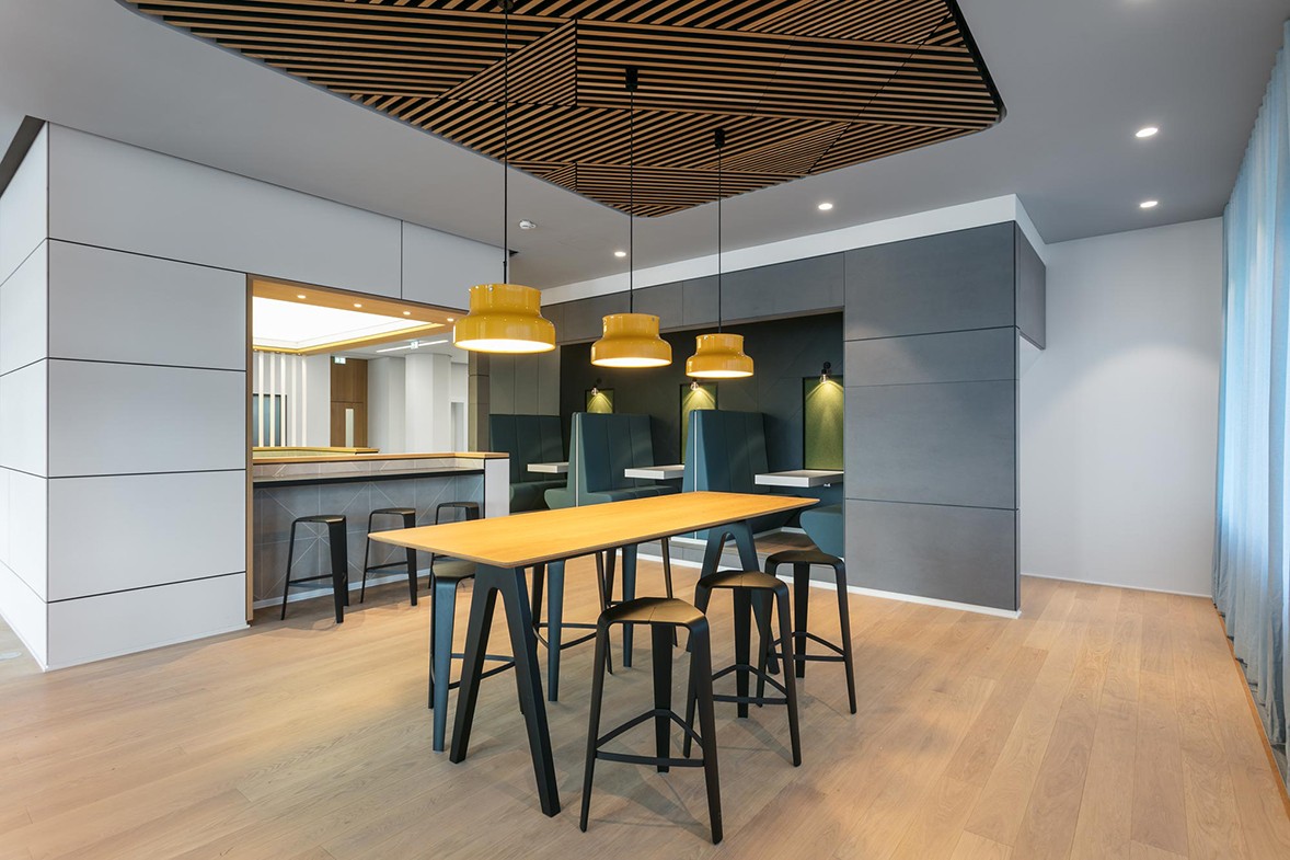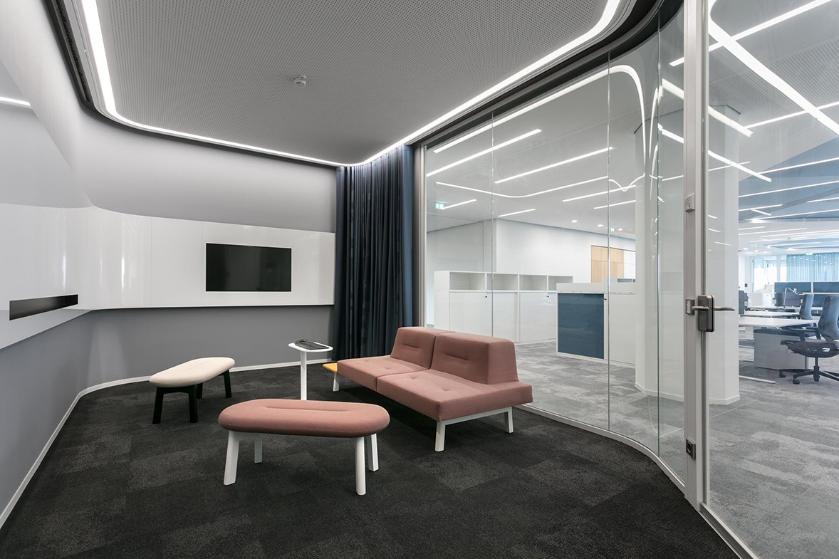 設(shè)計(jì)采用標(biāo)準(zhǔn)材料體系,在合理的預(yù)算內(nèi)設(shè)計(jì)出精致的空間。在淺棕色的線性照明凹槽和嵌入式的板條裝飾。定制桌椅和入口處圍合私人辦公室與會(huì)議室的墻體展現(xiàn)出更多木質(zhì)細(xì)節(jié)。此外,工作和會(huì)議空間還都配備像咖啡館一樣的寬敞休息室,可以容納所有員工。工作空間裝點(diǎn)著織物和陶瓷材質(zhì),就像住宅一樣溫馨舒適。以一個(gè)簡(jiǎn)單的幾何形狀來構(gòu)建空間秩序,用最簡(jiǎn)單的方法去解決復(fù)雜的問題。游走于灰白黑之間,一抹亮色便成為點(diǎn)睛之筆,活躍跳脫,是為創(chuàng)意支點(diǎn),靈感源頭。亦作為整個(gè)空間設(shè)計(jì)靈魂之所在。