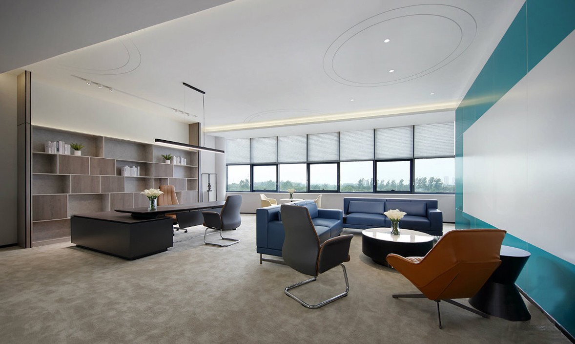 The meeting room and the water bar are the core of the space, thus forming a loop of movement. There are different paths for guests and employees to enter the company. Employees can enter the office area from the side entrance more effectively by swiping their cards. Visiting guests need to surround the periphery of the meeting room to enter the company area. This design allows guests to visit the company's projects and part of the display of crafts and materials along the way, allowing visitors to better understand the company's various aspects of business capabilities. The deepest part of the space is the most important office area. One side is by the window, and the other side is planned as a negotiation room, where small meetings and exchanges can be more convenient. For office space planning, we allow employees and leaders to have a certain distance and separation between the office space, so that they can devote themselves to work more relaxedly.
