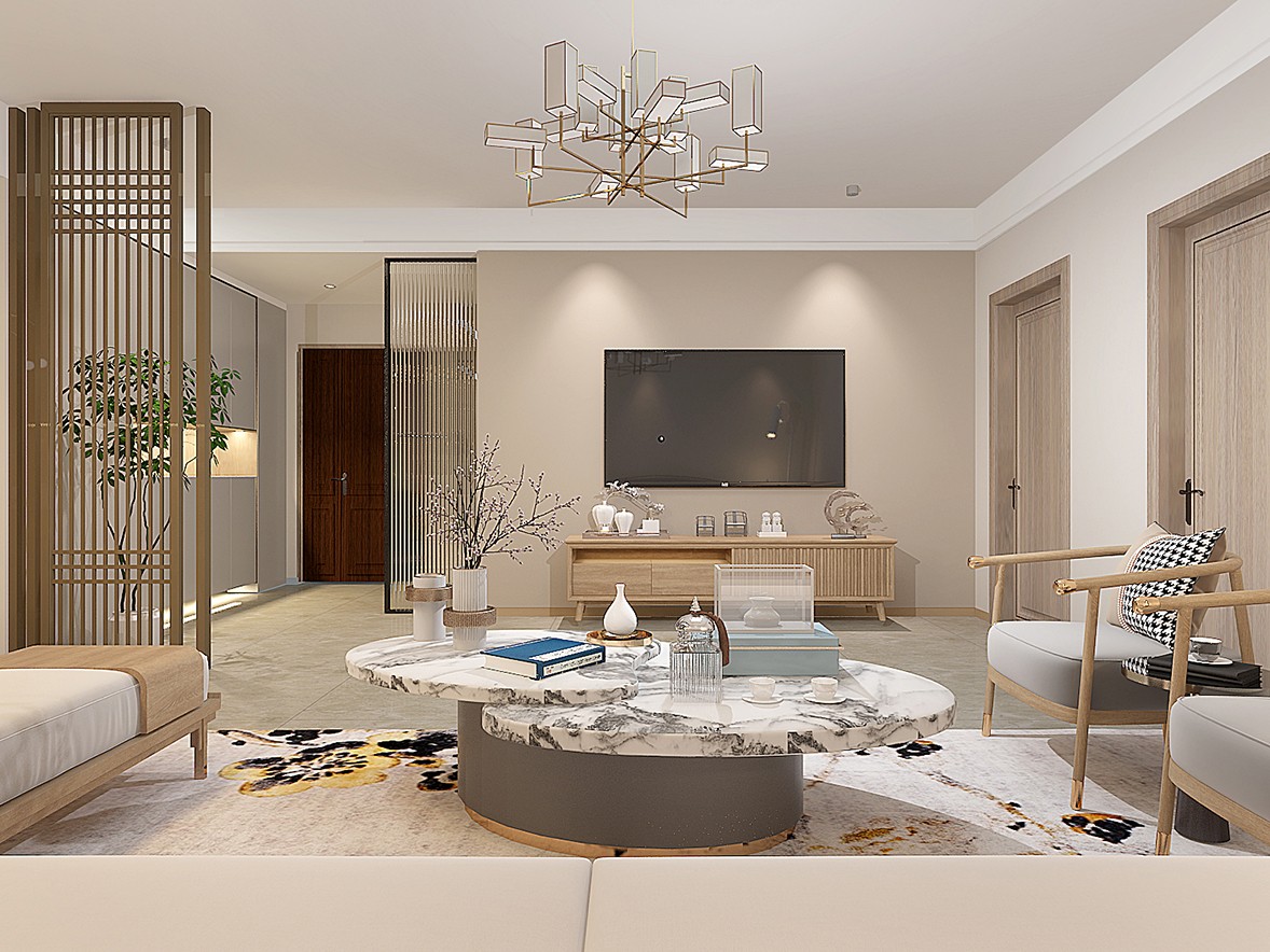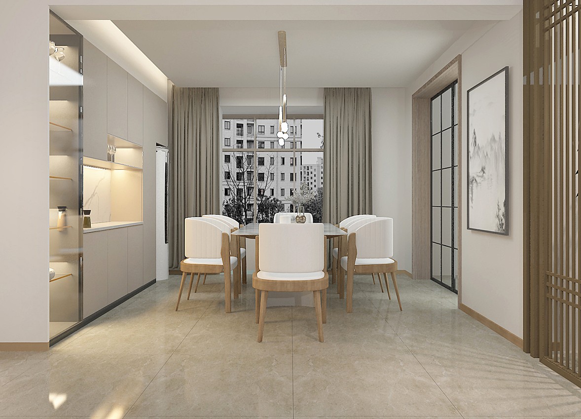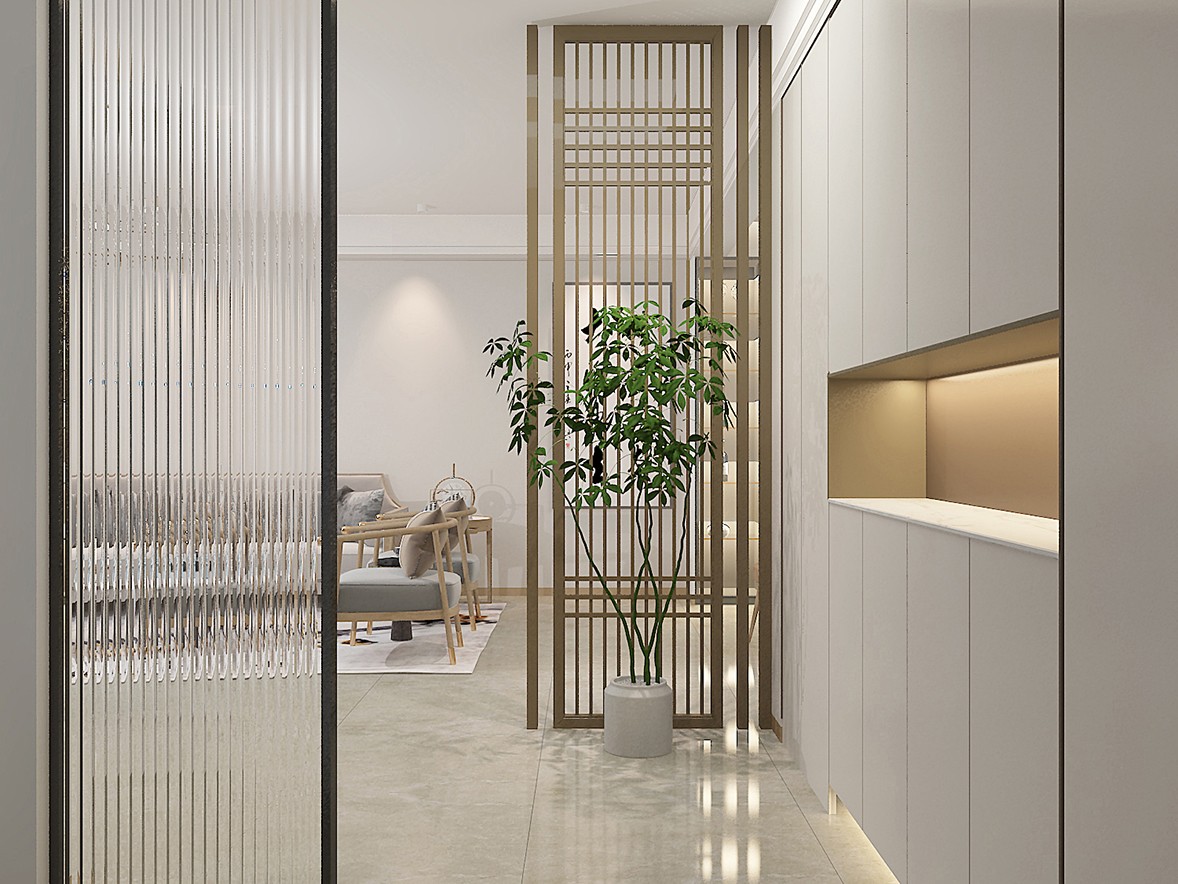 Based on the living habits of the occupants, each area is extended in a reasonable space. The entrance hall is the designer's laying of the home life. The curved ornaments set the soft tone. The smart atmosphere changes the atmosphere of the home. When strolling and staying in the room, the light flickers and extinguishes at the fingertips, and one key is the beginning of life. The natural breath brought by the greenery retains the thoughts and moves freely in the space, as if sinking into a long river of time, calm, free and very poetic. Large-area windows let the sun shine in every corner, and alluding to the warm and comfortable sense of life into the hearts of the occupants.